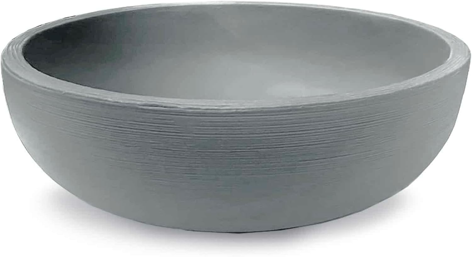 Crescent Garden Orinoco Planter Bowl – Double-Walled Resin Pot for Succulents, Flowers Without Drain Hole - 21" W x 8.25" H (Weathered Concrete)