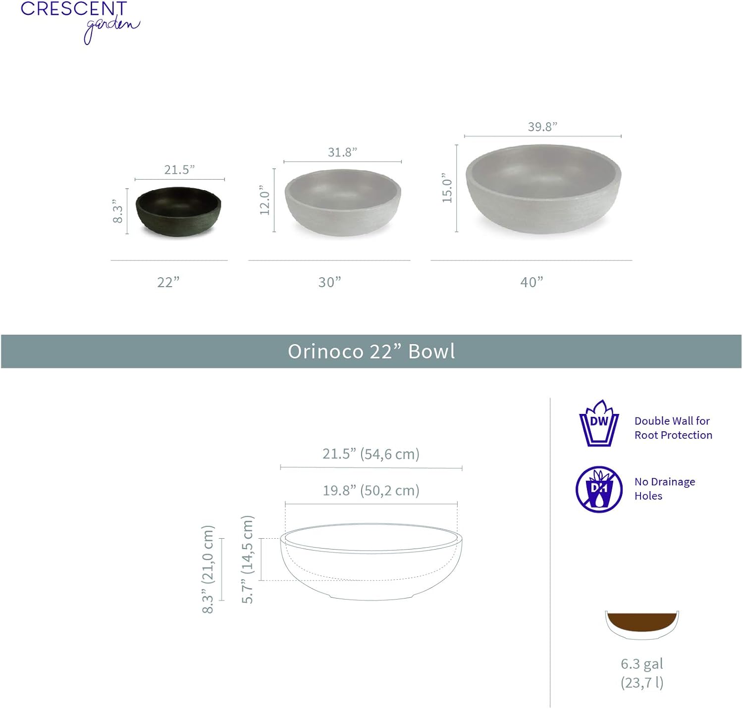 - NO DRAIN HOLE: Please note the Orinoco 22” bowl does not have a drainage hole. Our timeless and modern bowl planters are ideal for your indoor space or your outdoor deck, patio, or balcony. They effortlessly complement any design style and house your favorite flowers, succulents and other plants.