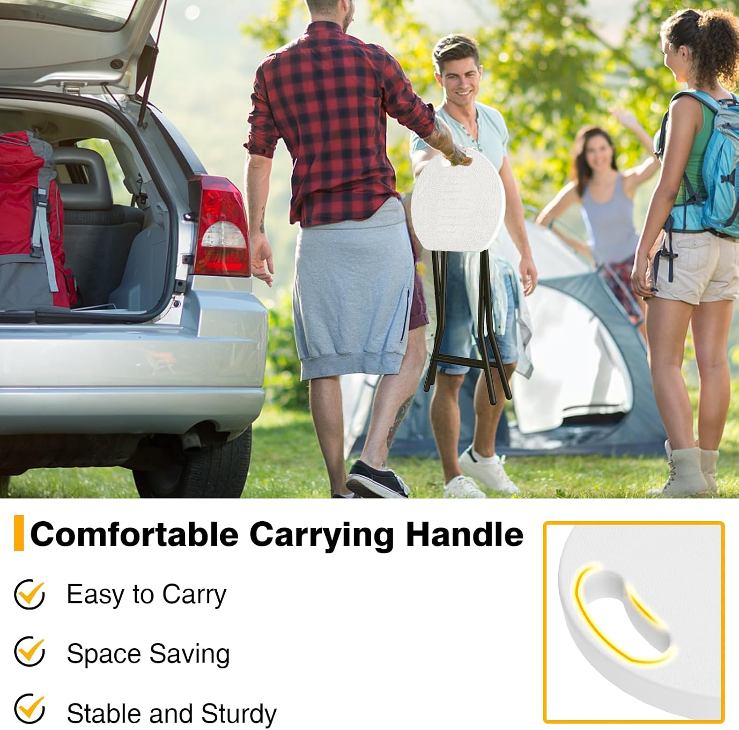 TAVR Furniture Portable Folding Chair with Handle, Heavy Duty Round Fold Stool Chair with 500lbs Capacity for Adults, 18 Inch Foldable Stool for Dorm, Kitchen, Vanity, Church and Outdoor use