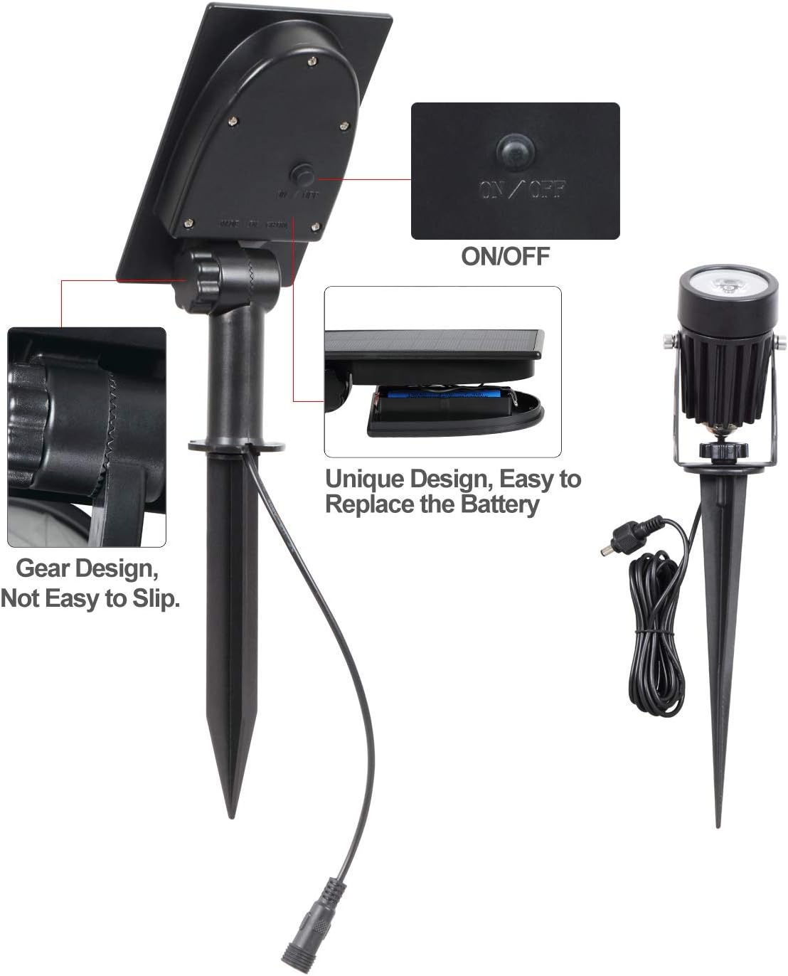 - 【Wide Application】 -- Waterproof rating IP65, don't worry about rain, snow and dust. The solar spotlight perfect for garden, patio, driveway, stairs, pool area, etc..