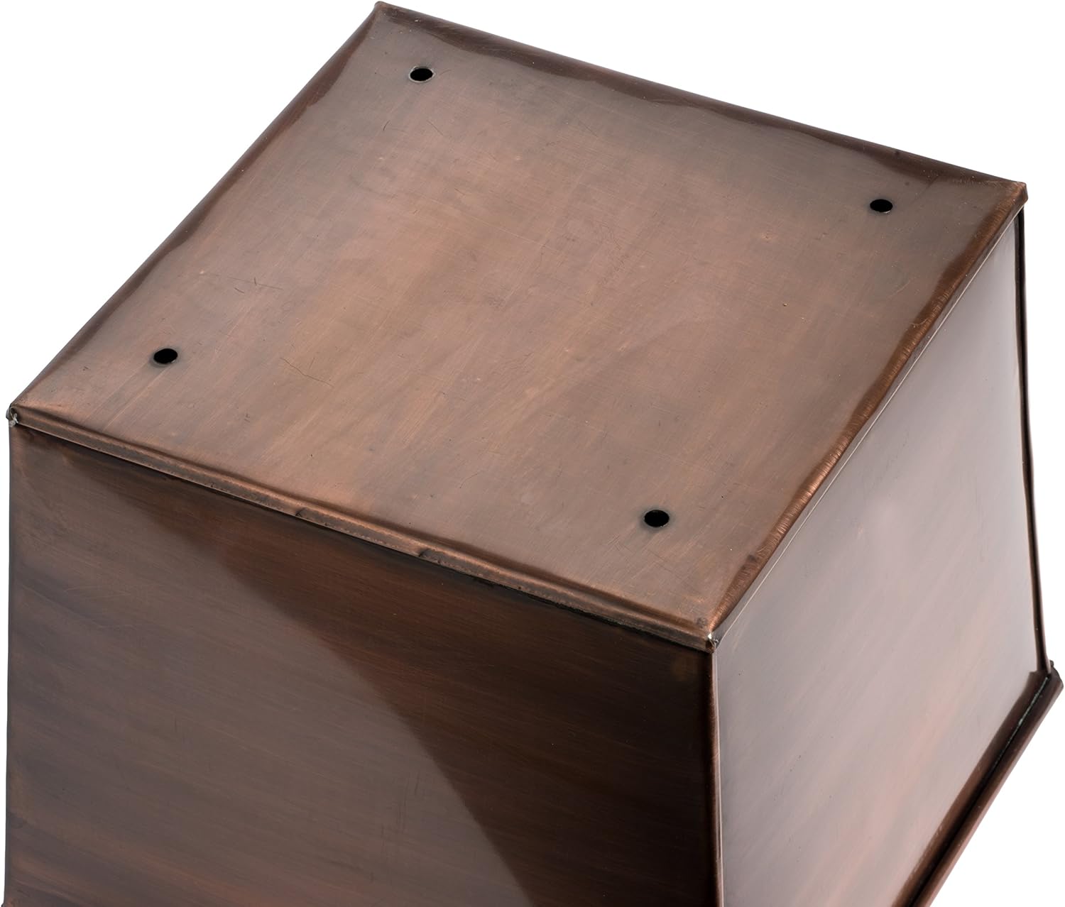 - Ribbed Planter Dimensions: Planter stands 29 inches tall and 11.25 inches square at the mouth of the planter, with the base measuring 8.25 inches square, included drip tray measures 10 inches square and is approximately 1.5 inches deep. Let this dynamically sized copper pot become the perfect addition to a porch or patio