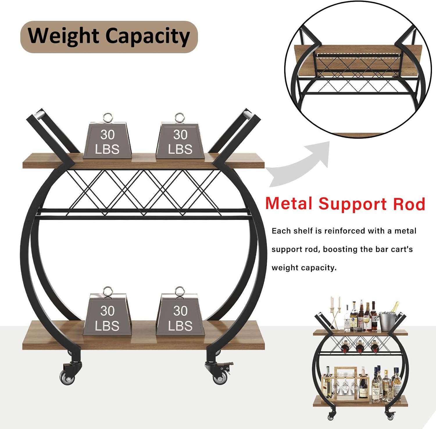 - 100% Satisfaction: With instruction and accessories included, you will never get stuck with the rolling bar cart assembly jobs. LVB has a professional customer care team that is willing to answer your questions before and after your purchase!