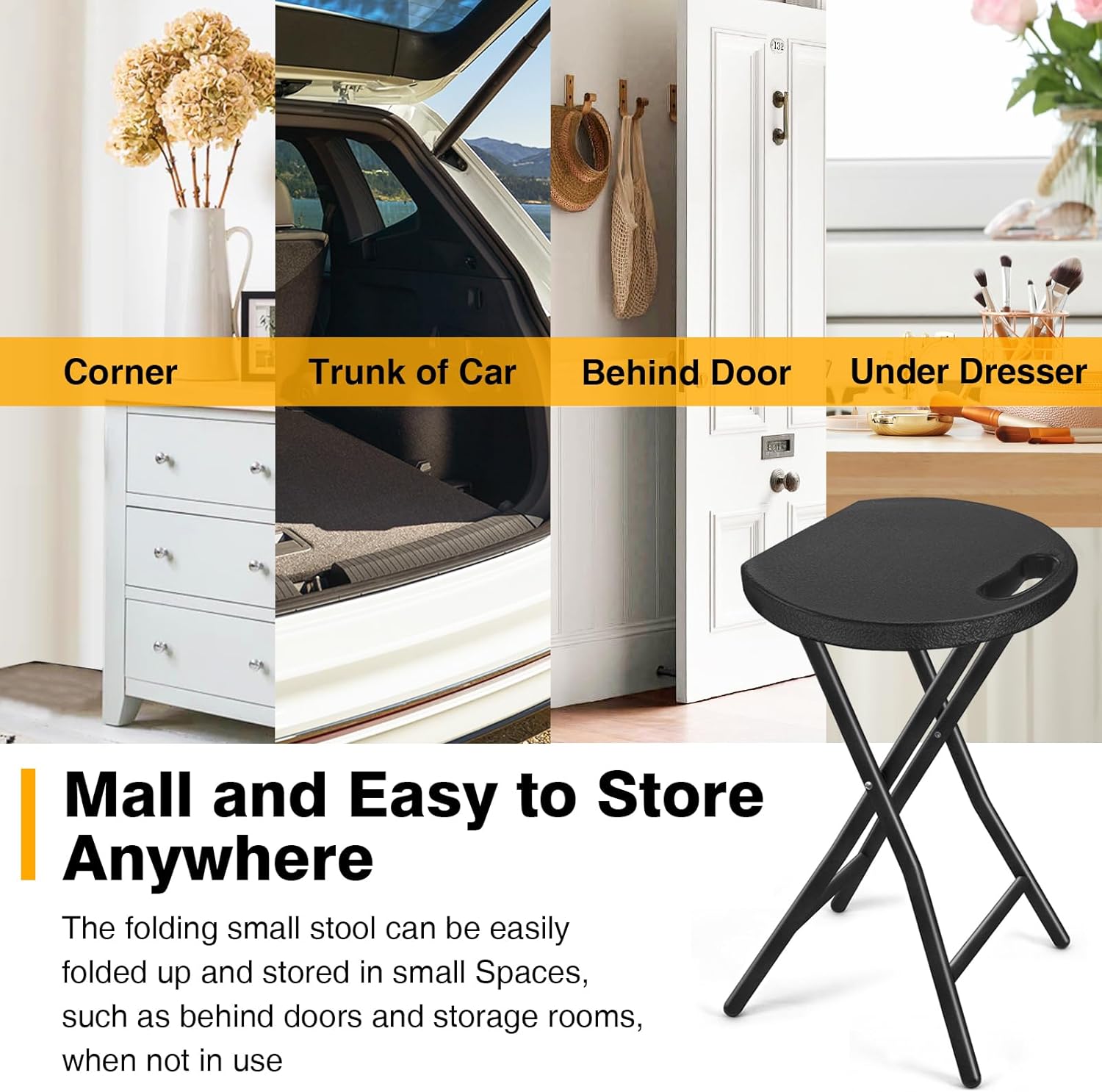 - Easy to Clean and Store - The folding stool is made of UV protected high-density polyethylene plastic with All-Weather Finish and easy to clean. The folding small stool can be easily folded up and stored in small Spaces, such as behind doors and storage rooms, when not in use.