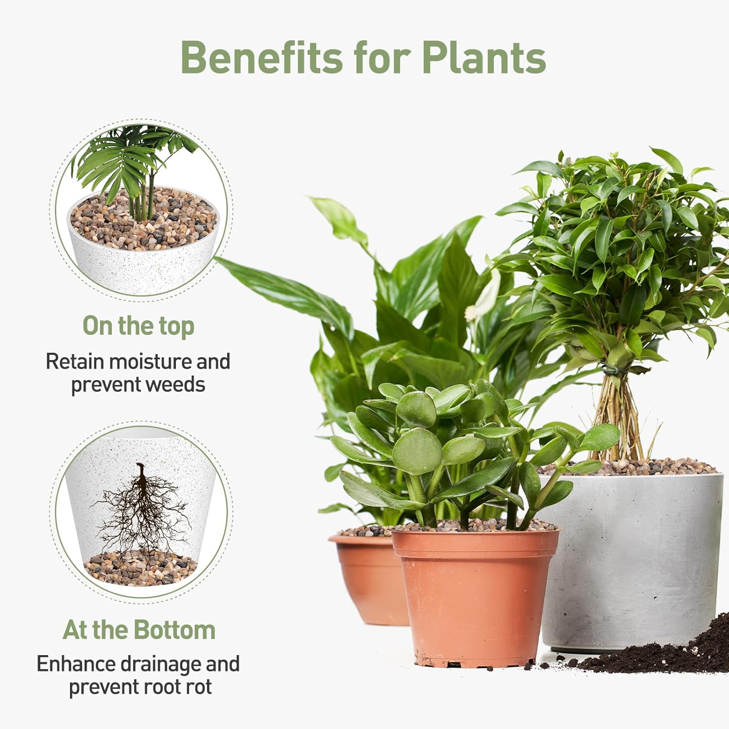 - 【Pea Gravel for Plants】These gravels also work well in improving drainage and air circulation, helping retain soil moisture and prevent soil erosion. It is ideal for small potted planters, cactus and succulents.