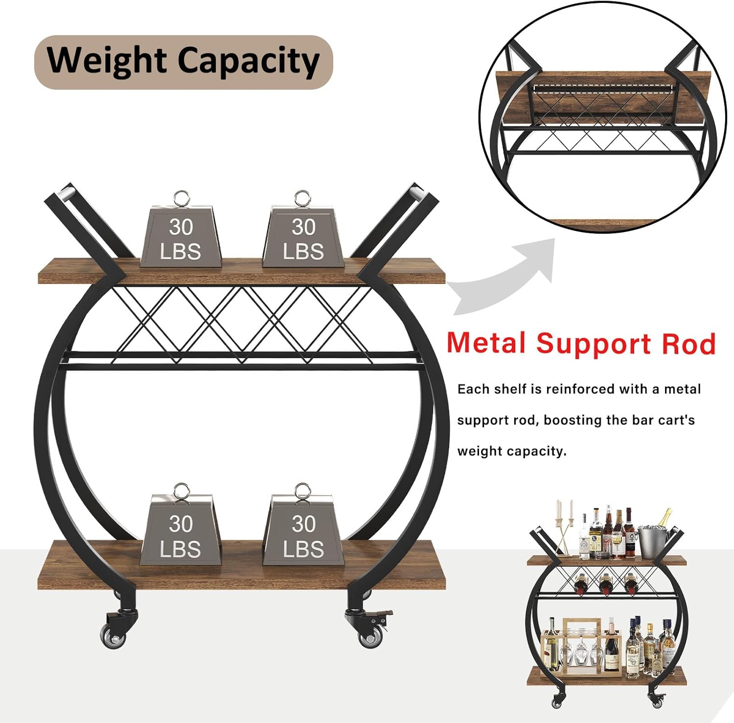 LVB Industrial Kitchen Bar Cart, Farmhouse Beverage Serving Liquor Cart with Wheels, Wood and Metal Rolling Wine Cart with Storage Shelf, Microwave Drink Cart for Home Living Dining Room, Rustic Brown