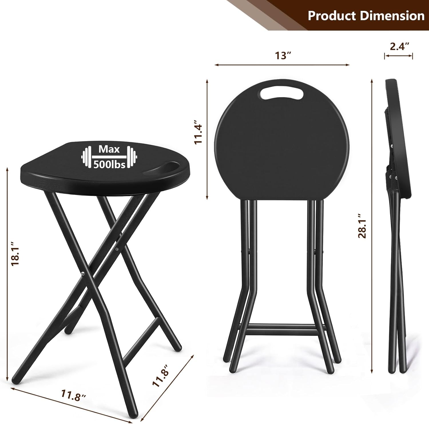 TAVR Furniture Portable Folding Chair with Handle, Heavy Duty Round Fold Stool Chair with 500lbs Capacity for Adults, 18 Inch Foldable Stool for Dorm, Kitchen, Vanity, Church and Outdoor use