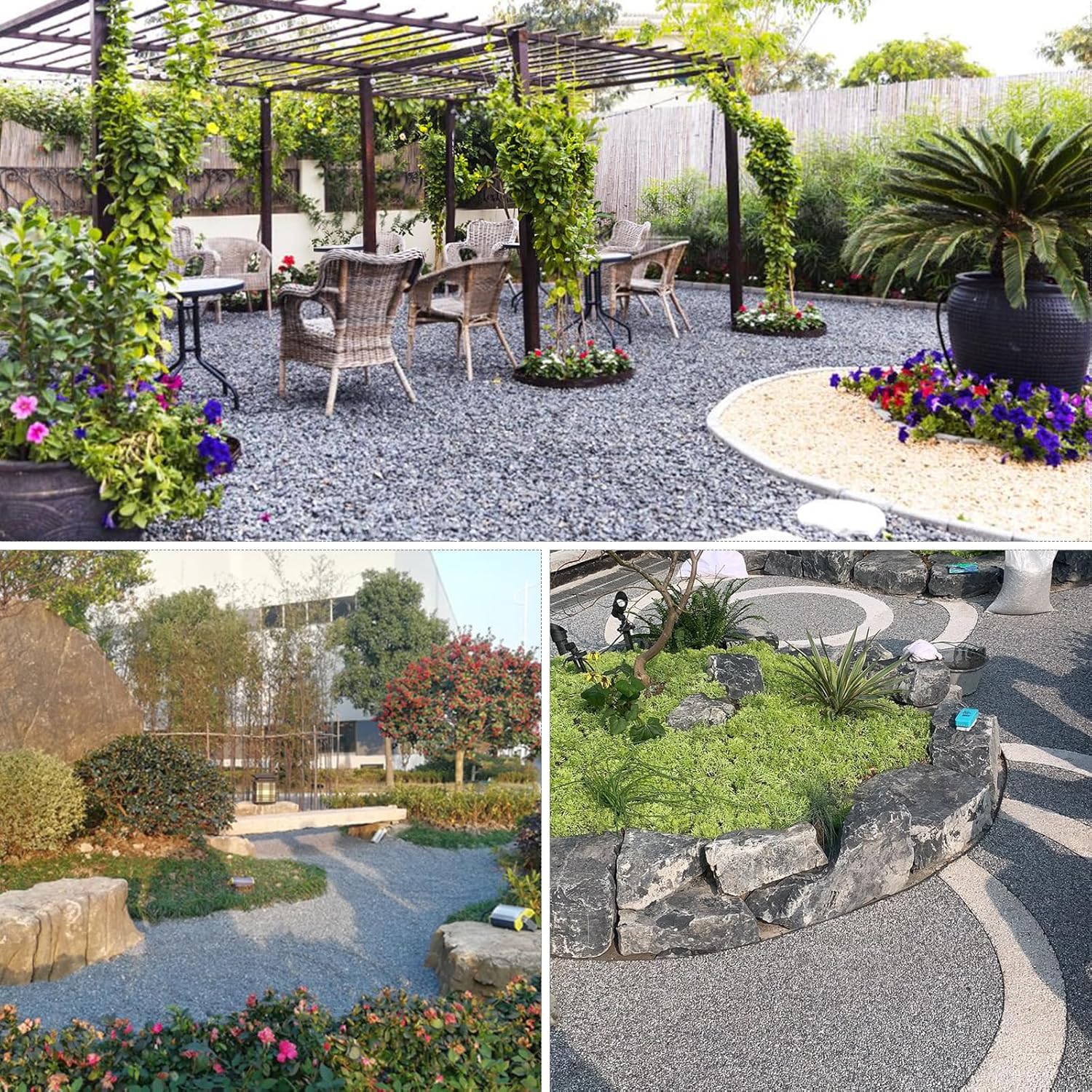 - 【Details of Pebbles】:The main image shows two states of pebbles: dry and wet. The color is brighter and the appearance is better in the wet water state,The main image shows two states of gravel: dry and wet. The color is brighter and the appearance is better in the wet water state,You can get a pack of 5lb grey pebbles, size approximately 3/8 inch, each packaged separately. These are natural pebbles that are very suitable for bedding and paving vases, succulent plants, and other items
