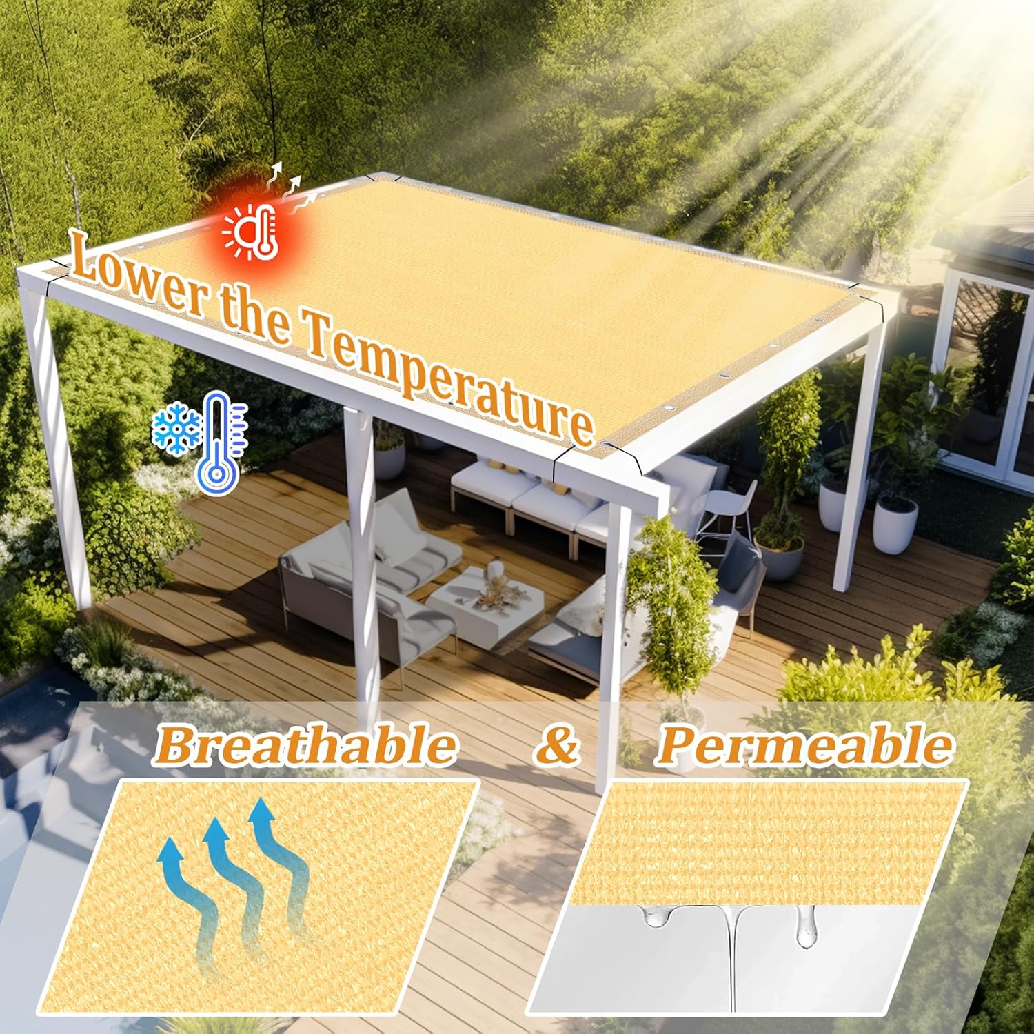 - [Easy to Install] With included grommets on each sides and fixing accessories, you can easily attach the pergola shade cover to various structures while ensuring uniform stress. Whether you're looking to cover your backyard, carport, or playground, you can have it up and providing shade in no time