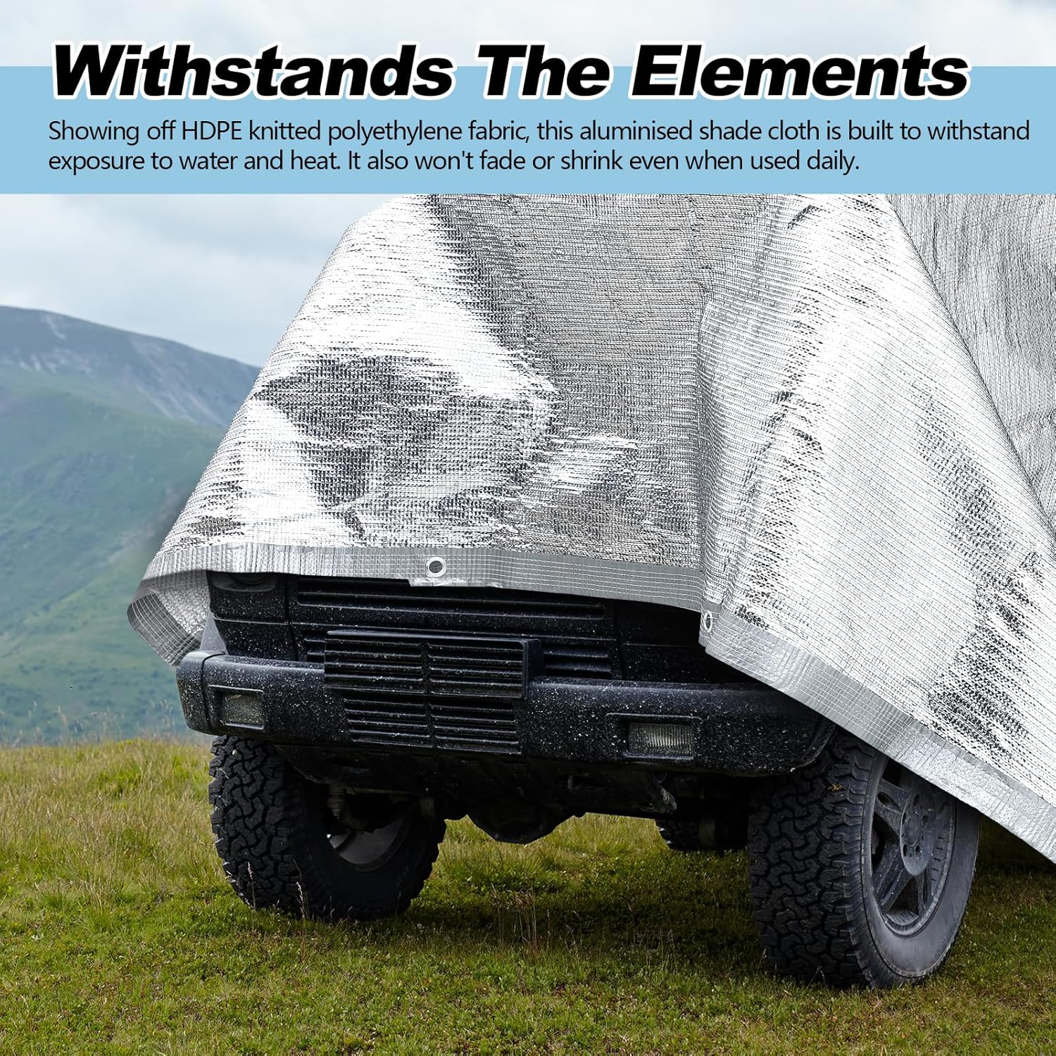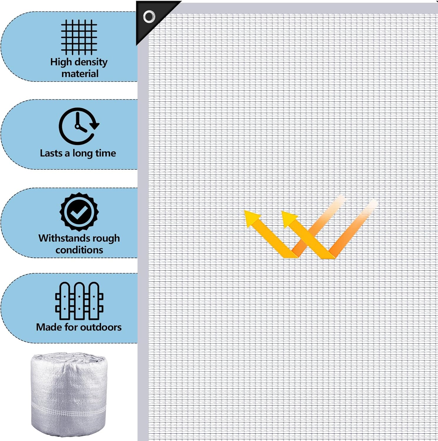 - Material with Excellent Shading Effect: made of aluminium foil film, this 99% reflective aluminium foil sun shade cloth helps in heat dissipation, light reflection, and radiation deflection, maintaining a cool environment even under harsh sunlight; More than just offering high durability, it is resistant to water, heat, fading, corrosion, and shrinkage