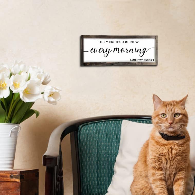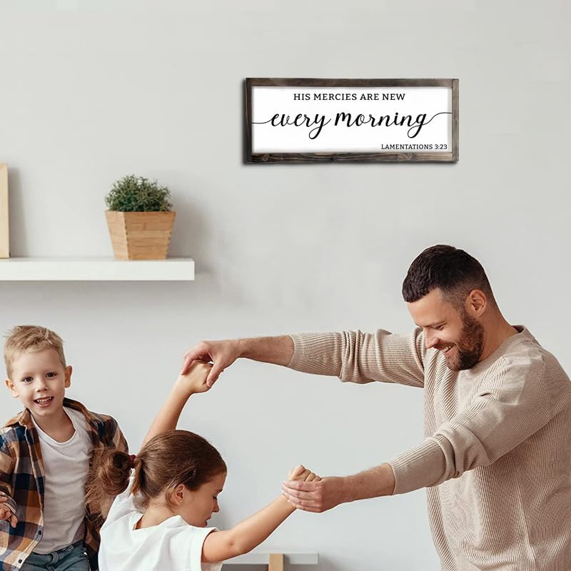 - Farmhouse Sign : Rustic Bible Verse wood signs with inspirational quotes " His Mercies Art New Every Morning Lamentation 3:23 " - wooden texture, farmhouse frame, and easy wall hanging plaque.