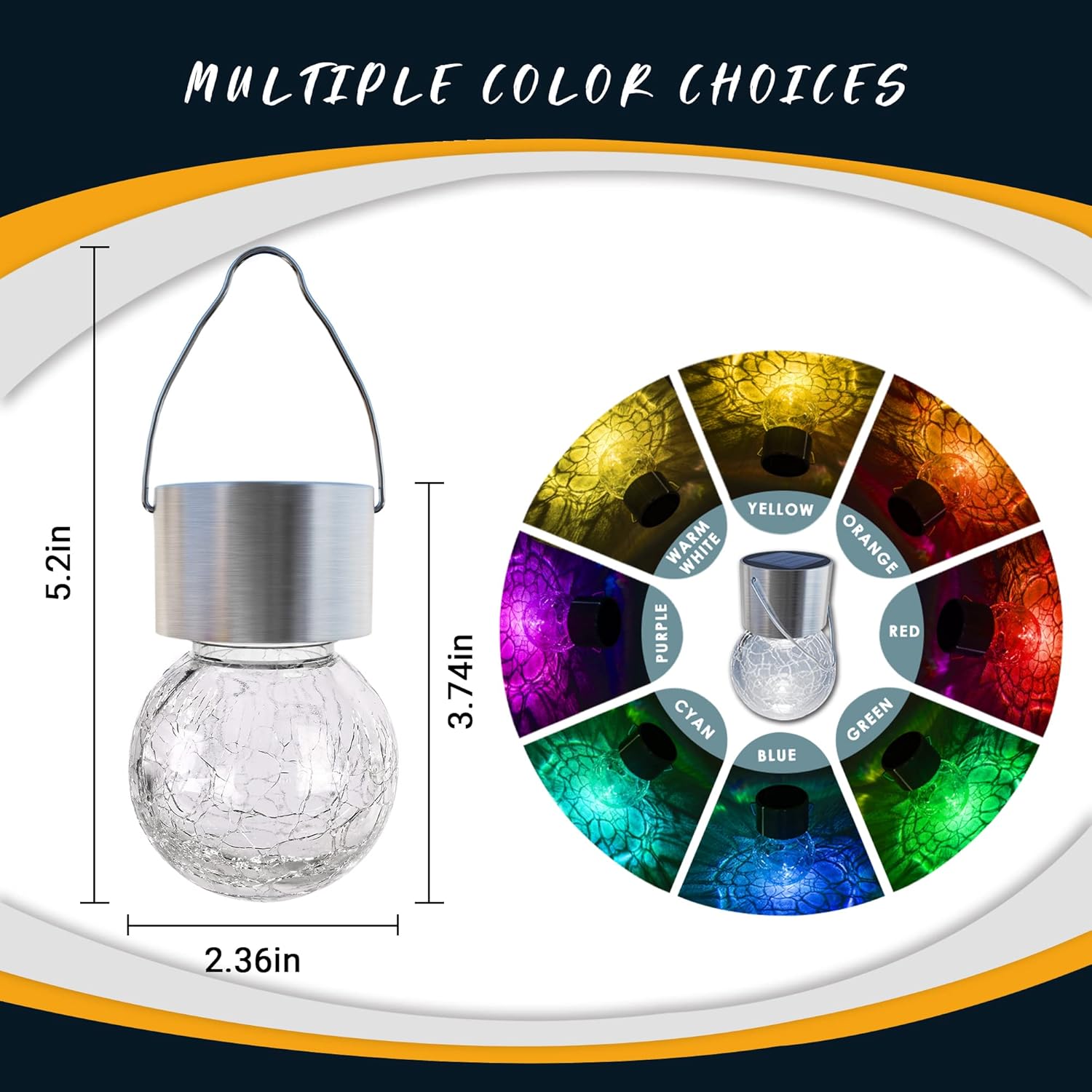 - 【Premium Material】Featuring a shimmering crackle glass globe, a sturdy stainless-steel hook and newest upgrade solar panel, solar hanging lights add a superior light effect to your garden