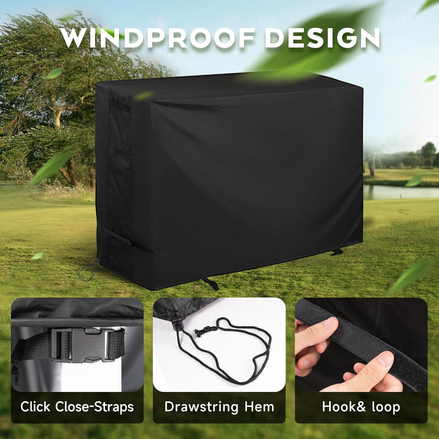 - FIT & SECURE β Drawstring and click close-straps allow you to easily adjust the grill cart for a tight and custom-like fit. Four buckles can keep the cover in place and prevent the cover from being blown off on windy days