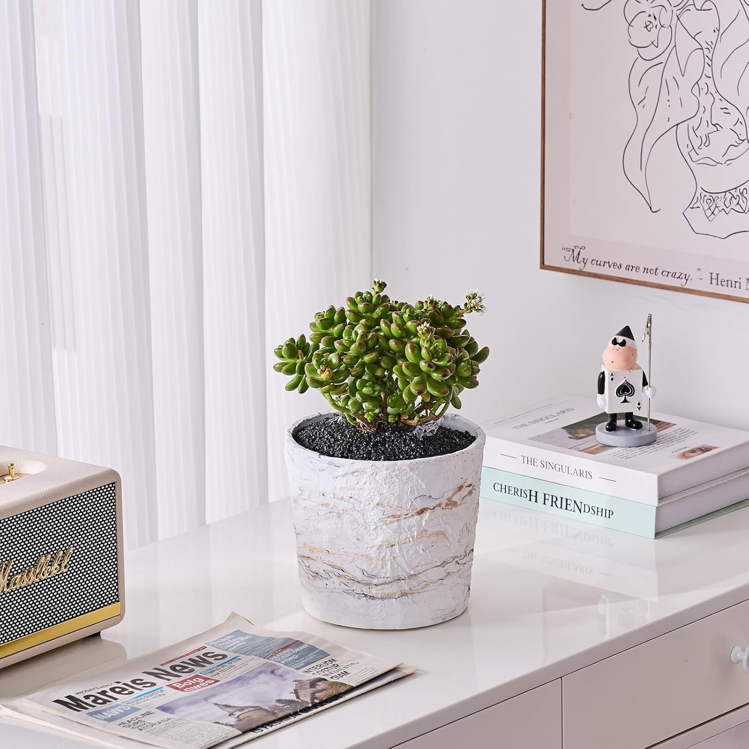 - 【Material】Ekirlin plant pot are made with durable eco-friendly resin, it is heavy and sturdy, Eco-Tniendy and with no odor,weather resistant will not deformed broken and faded. Can be used as a home decoration art