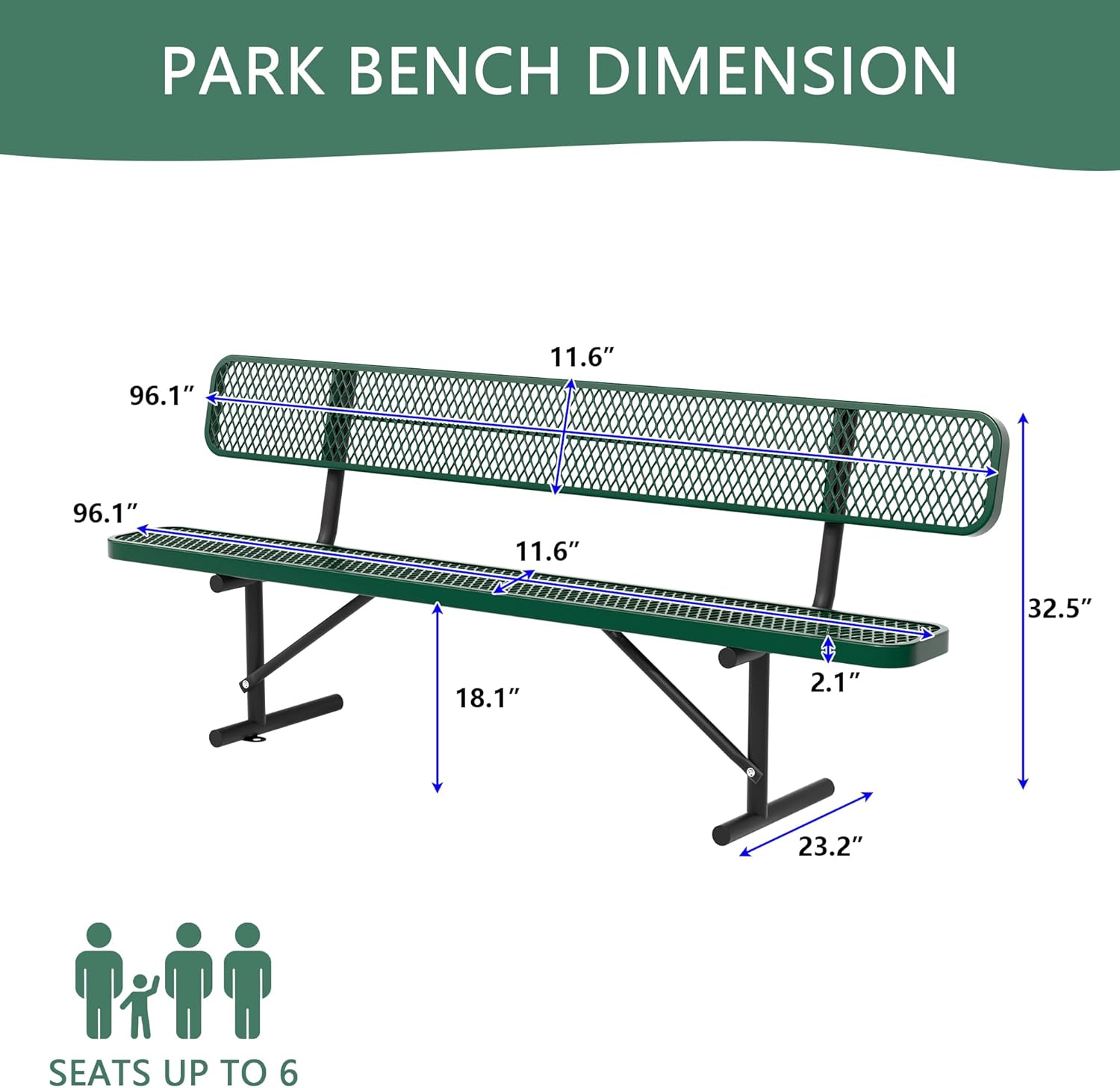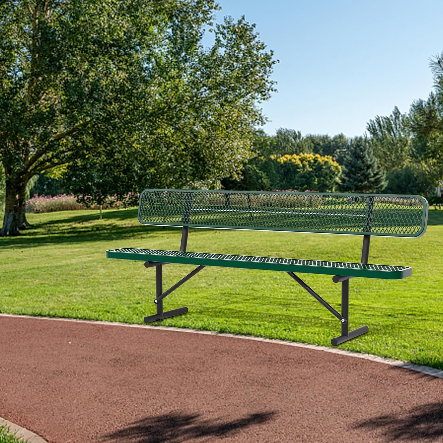 4/6/8 Feet Park Bench for Outside Heavy Duty Metal, Garden Benches Outdoor Bench with Backrest & Portable Frame, for Shopping Malls Stores Parks Patios Decks, Green