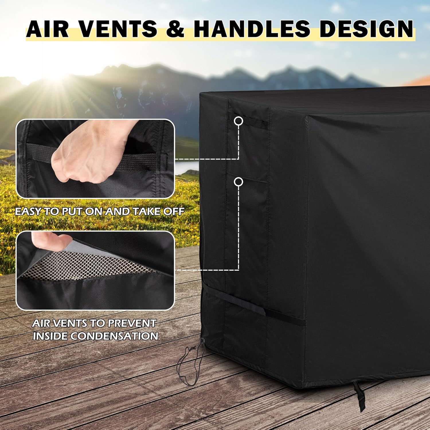 - AIR VENT & HANDLES β The design of the air vents can improve the air flow to prevent inside condensation, keeping your outdoor kitchen cabinet dry and clean. Two reinforced handles make the cover easy to put on and take off