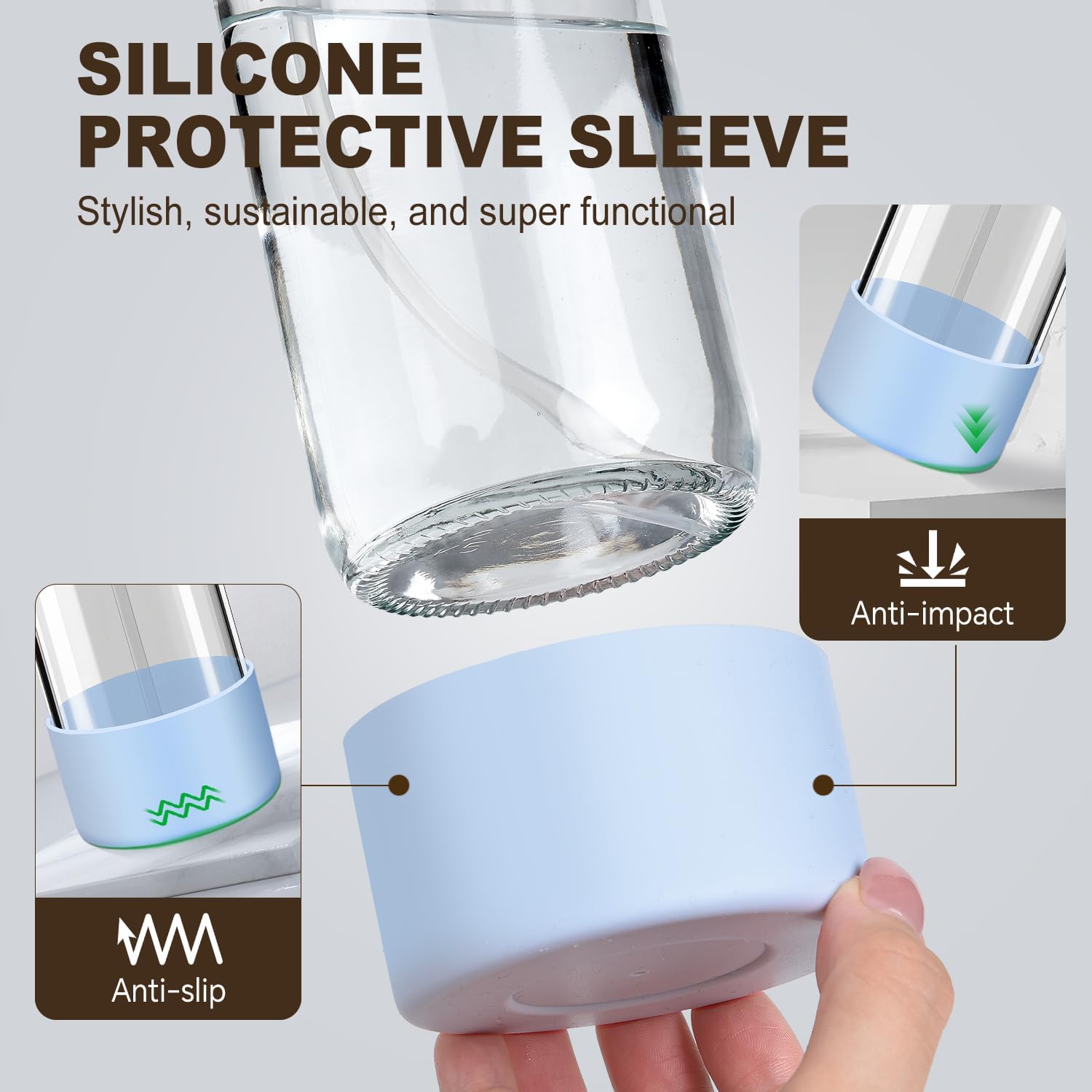 - Premium Glass Bottle & Silicone Protective Sleeve - Crafted from high-quality, lead-free, and BPA-free glass, this reusable spray bottle offers a safe, sustainable way to store and spray liquids. The sturdy silicone sleeve cushions the bottle from accidental drops and provides a non-slip grip for extra confidence during use. Its stylish pop of color also makes it a practical and attractive addition to your countertop or cleaning caddy.