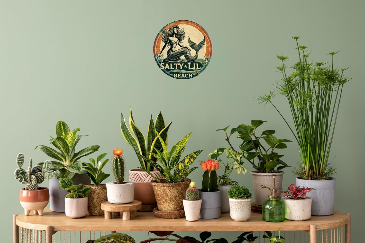 Mermaid Wall Art Decor Metal Sign Beach Vintage Round Plaque Nautical Themed Bar Cafe Home Decor Enthusiasts Gift for Friends and Family 8x8 In