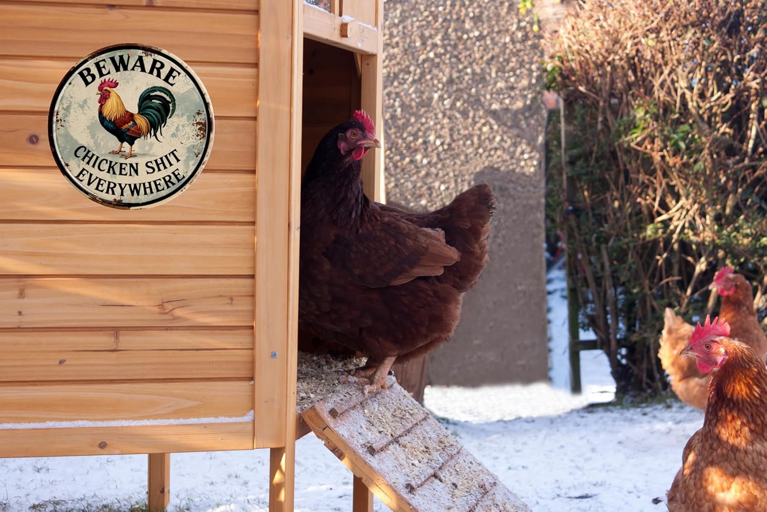 Chicken Decor Vintage Beware Chicken Shit Everywhere Rooster Wall Art Rustic Farmhouse Decor for Restaurants & Home Wall Mounted Vintage 8x8 In