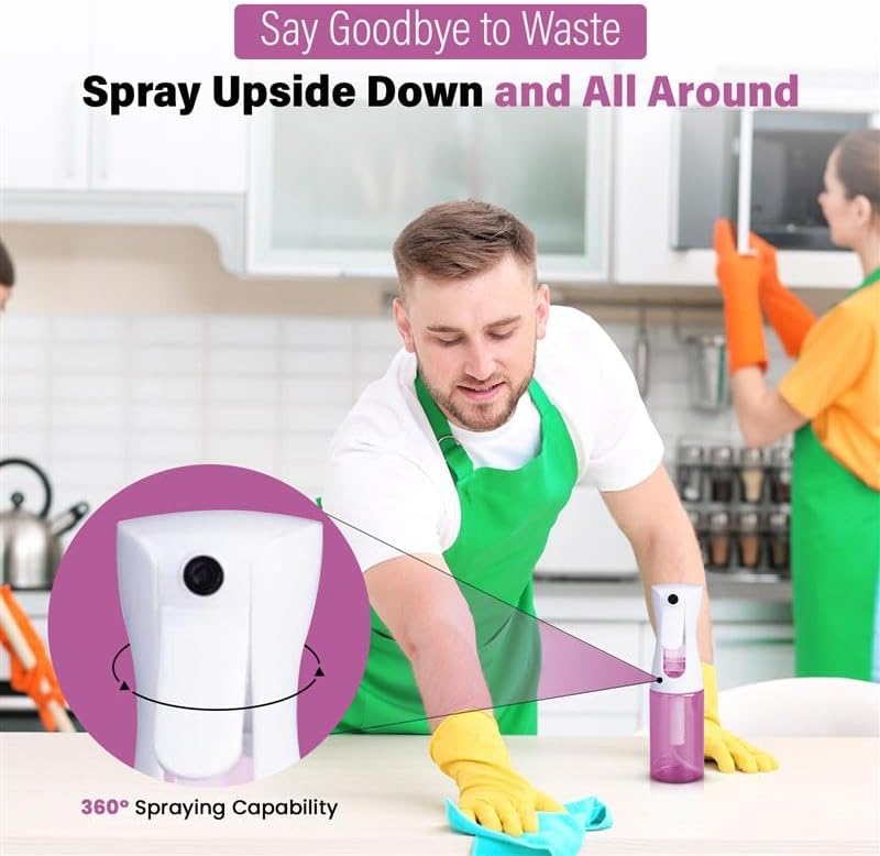 - WIDE USES: The powerful and consistent spray of these continuous mist spray bottle can be used for various household and beauty purposes including cleaning, ironing, hairstyling, watering plants, dispensing air fresheners, misting essential oils and much more.