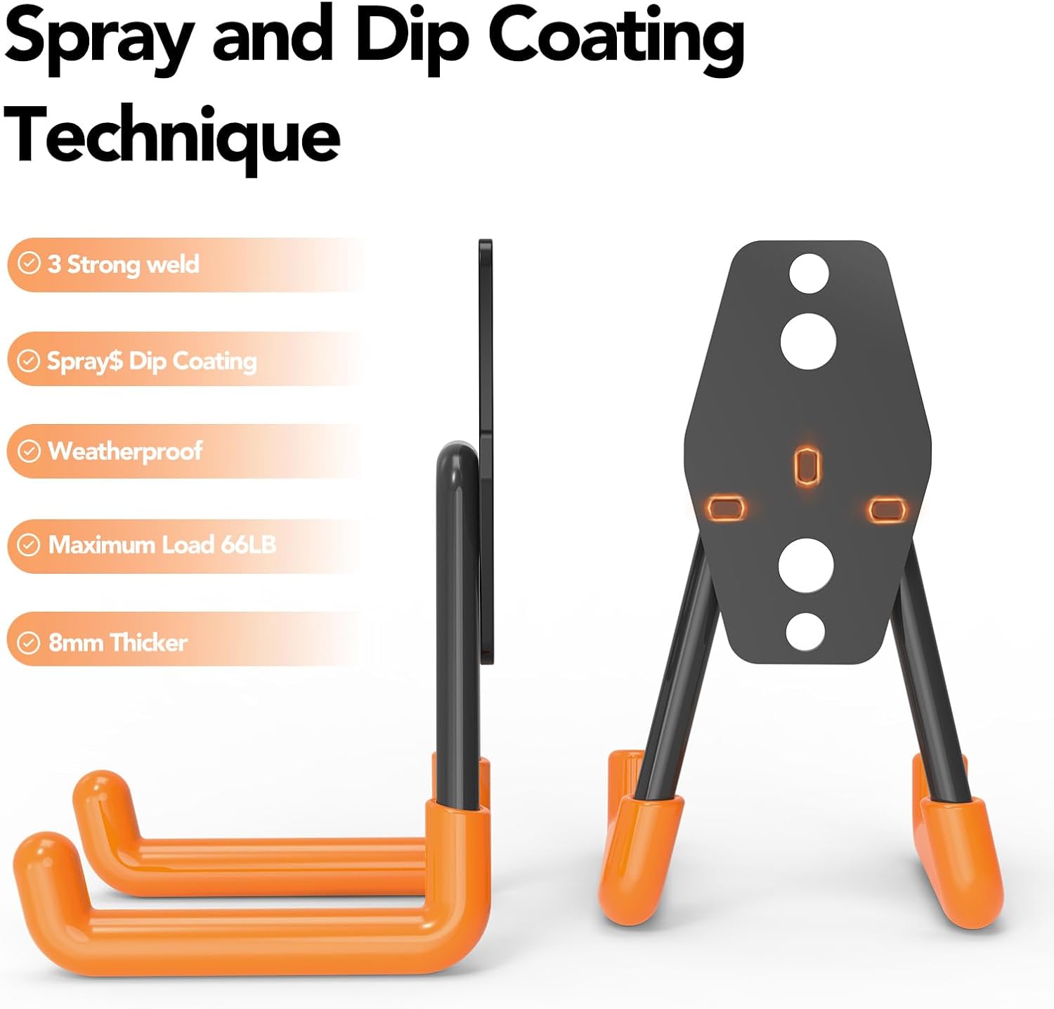 - WEATHERPROOF& DURABLE- Rain or shine, this garage storage hooks stands strong! Its surface is treated with a special spray and dip coating process, ensuring it's waterproof, slip-proof, scratch-resistant, and built to withstand whatever nature throws its way