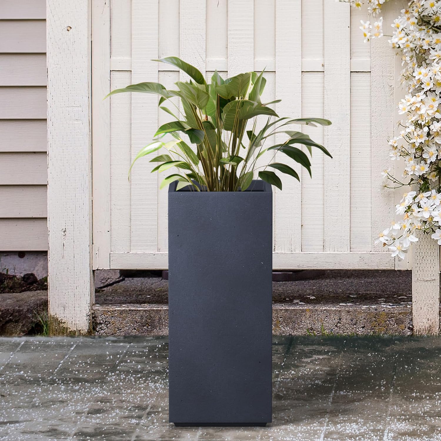 Kante 23.6" H Tall Rectangular Concrete Planter, Modern Square Diameter Plant Pot with Drainage Hole and Rubber Plug for Indoor Outdoor Home Patio Garden, Charcoal